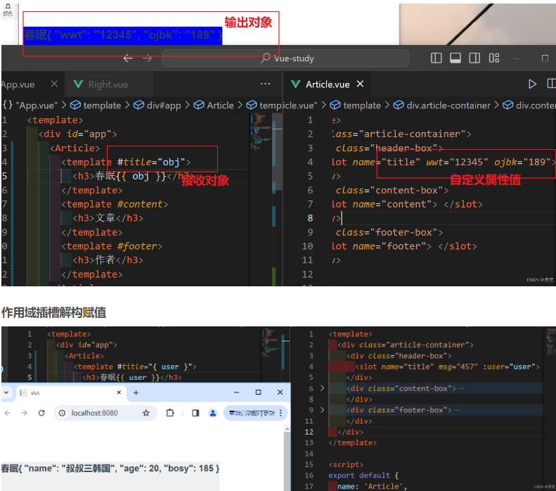 主要是由组件封装者使用的,允许开发者在封装组件的时候,把不确定的、希望由用户指定的内容部分定义为插槽类似于卡槽