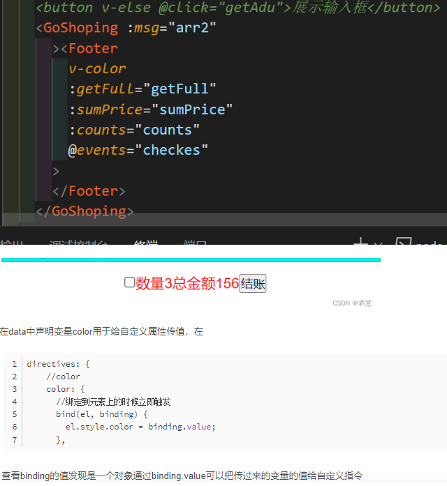 查看 binding 的值发现是一个对象通过 binding.value 可以把传过来的变量的值给自定义指令