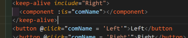 component 是组件占位符,不使用 v-bind:is 可以直接把组件名写入,使用动态的值就需要使用 v-bind 动态绑定数据,可以实现效果:点击 left,left 展示点击 right 按钮 right 展示