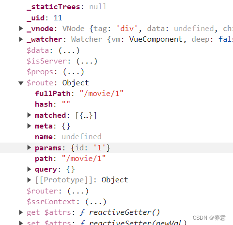 打印各个 movielink 所指向的 this,$route.params 上的参数