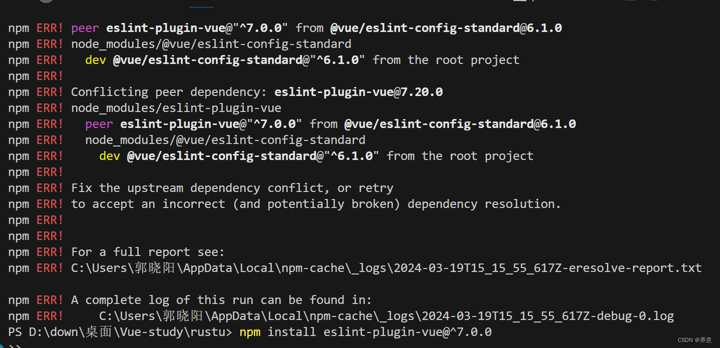 大概意思就是依赖项版本冲突标准 6.1.0 的只支持 7.0.0 以上的但是我的是 8.0.3 以上的所以需要降到 7.0.0 执行命令: