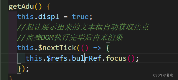 这时候就用到了 this.$nextTick(回调函数)延迟执行(当前调用栈执行完毕后再触发回调函数,类似于定时器)也就是宏任务