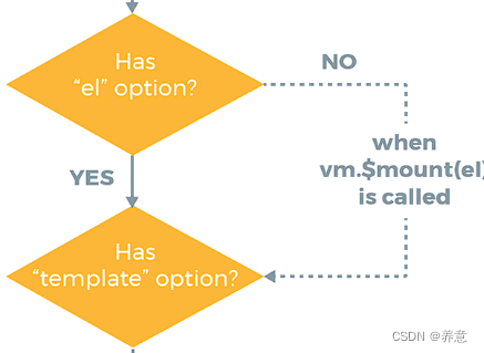 判断实例里面有没有 el 没有就去找 $mount, 有 el 就去判断有没有 template 模板