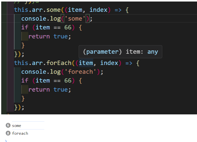 foreach 循环一开始就会执行完毕,some 更适合在数组中查找对象合适