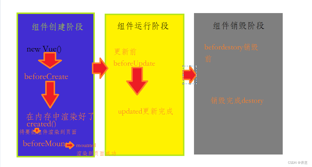# 组件的生命周期(创建 > 运行 > 销毁)