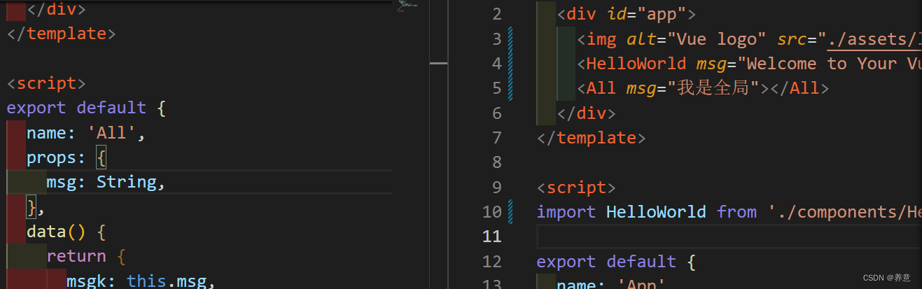 组件数据共享:父传子:子组件通过在 props 中自定义属性来接受从父组件中子组件的标签上通过 v-bind 传值到子组件中